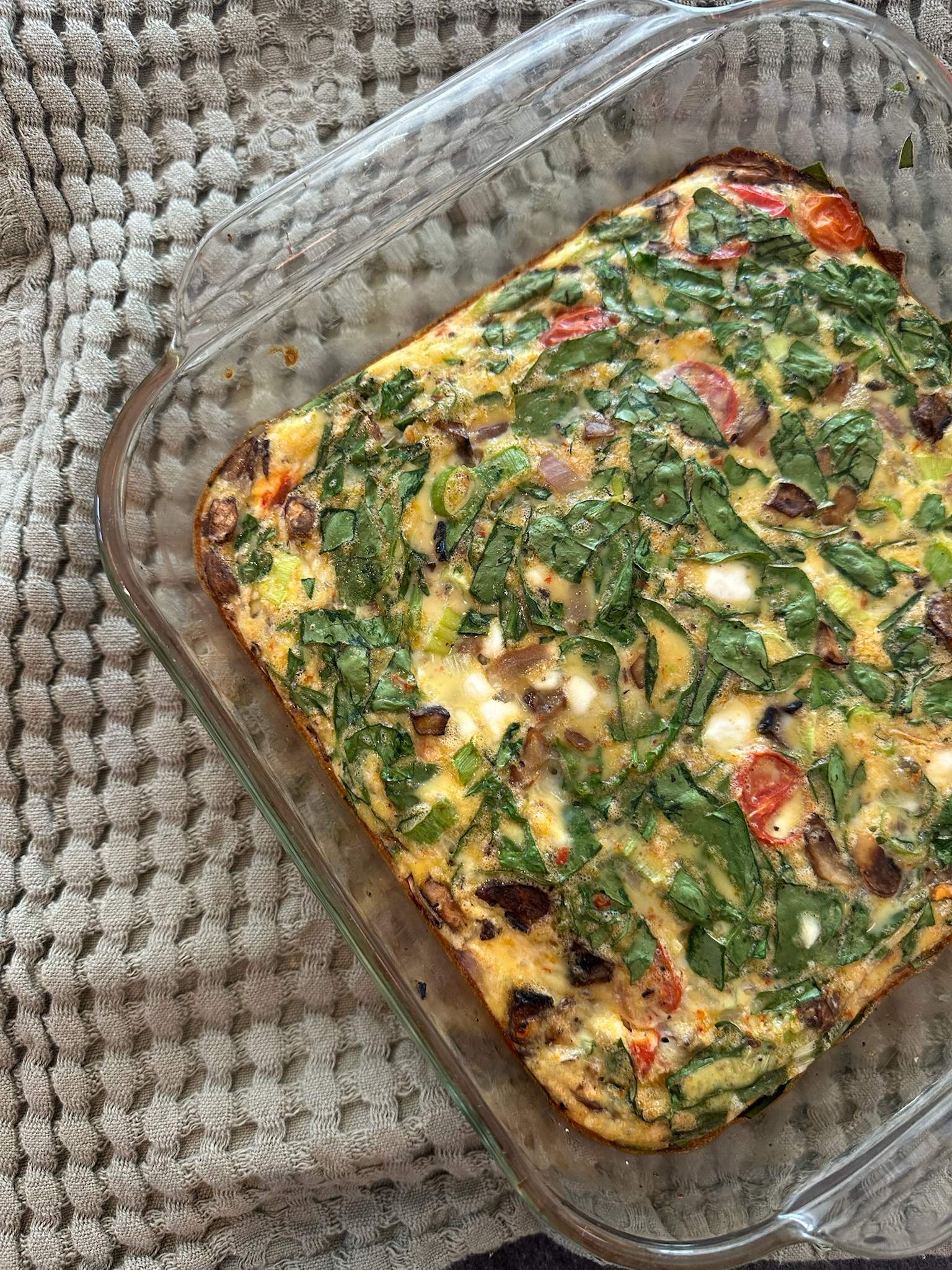 Bake for ~30 minutes at 350 degrees (or until the eggs are done).