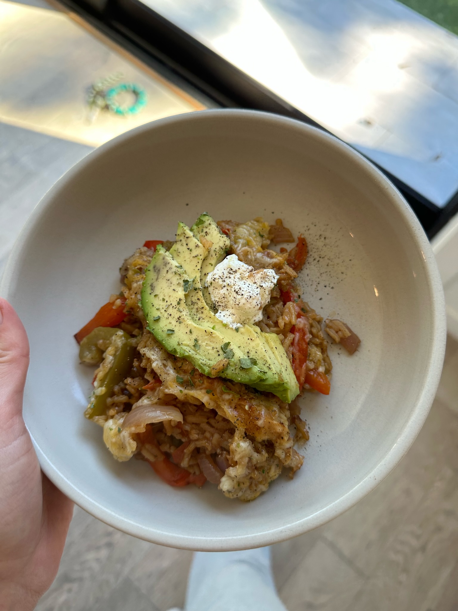 Garnish with sliced avocado (& optional hot sauce and cilantro) and serve with a dollop of sour cream. Enjoy!! xx