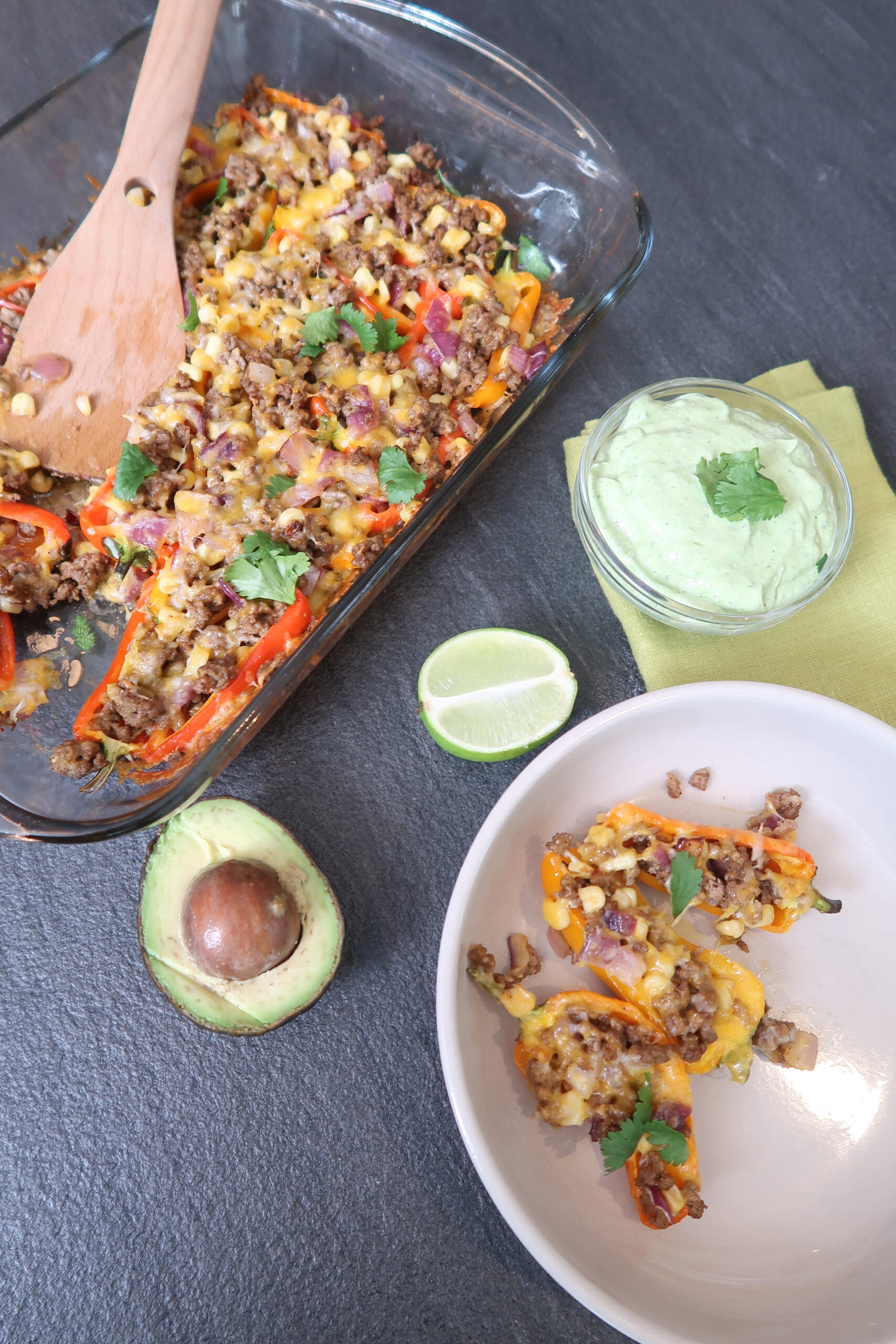 Southwest-Inspired Stuffed Mini Peppers with Lime Avocado Cilantro Crema