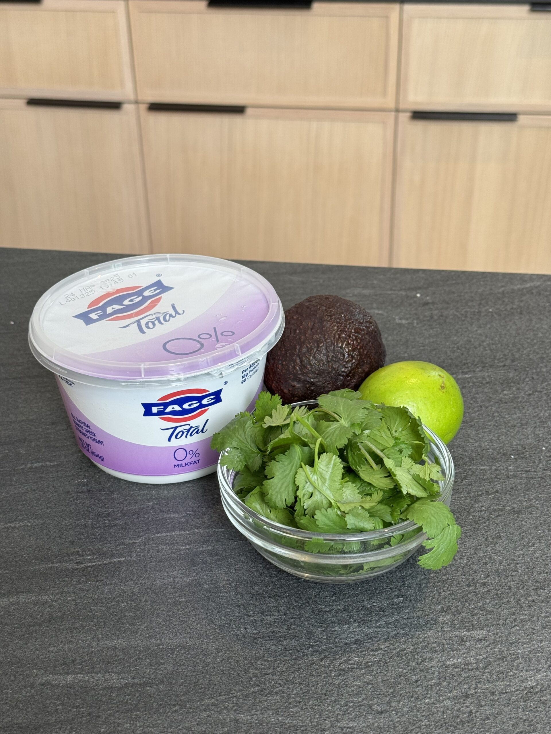 In a blender or food processor, combine Greek yogurt, avocado, lime juice, garlic powder, olive oil, and cilantro. Blend until smooth and creamy. Adjust the seasoning to taste, adding more lime or garlic if desired.