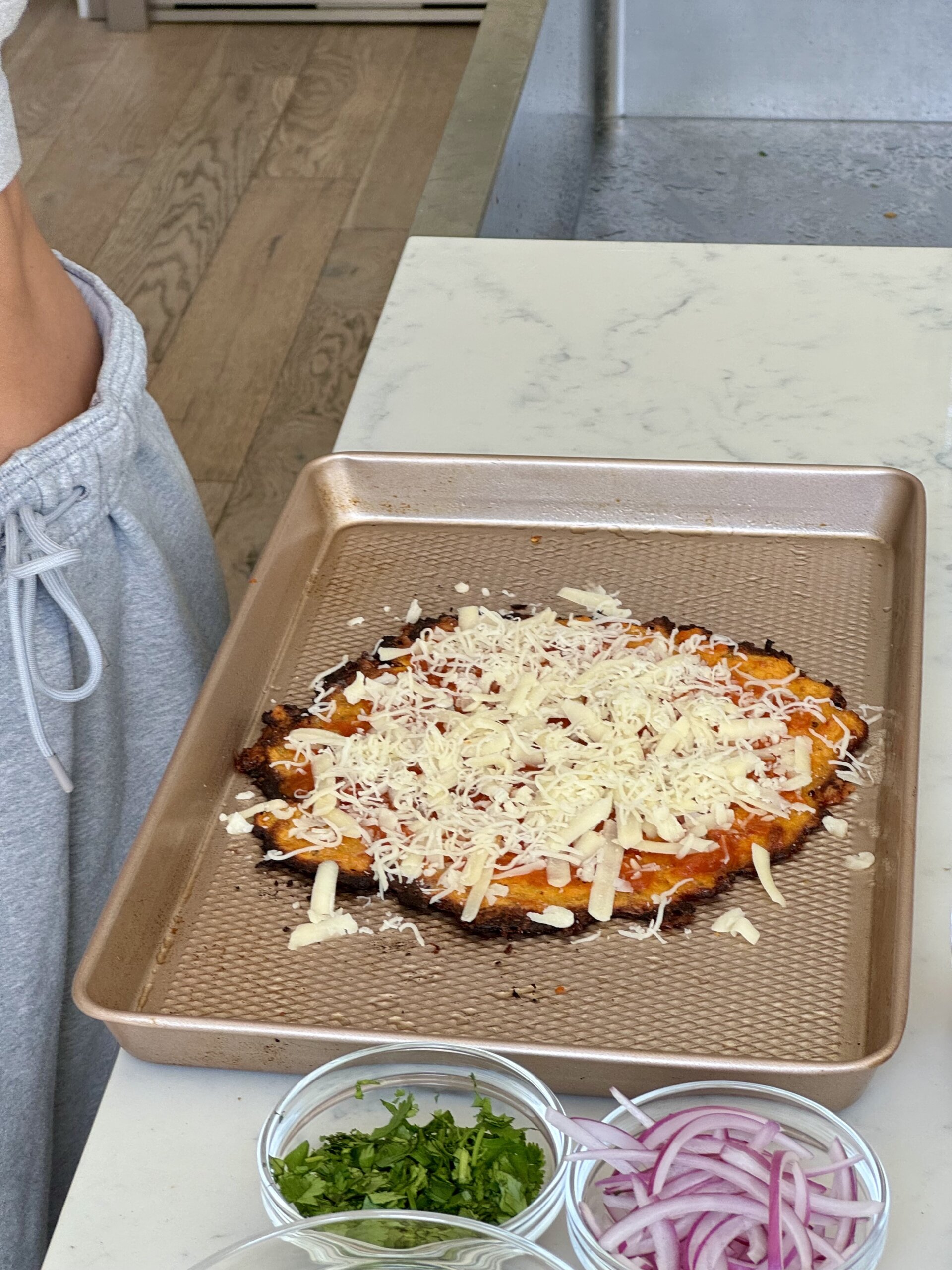 Place the pizza back in the oven and bake for another 5-7 minutes, until the cheese is melted and the red onions are cooked to your liking.