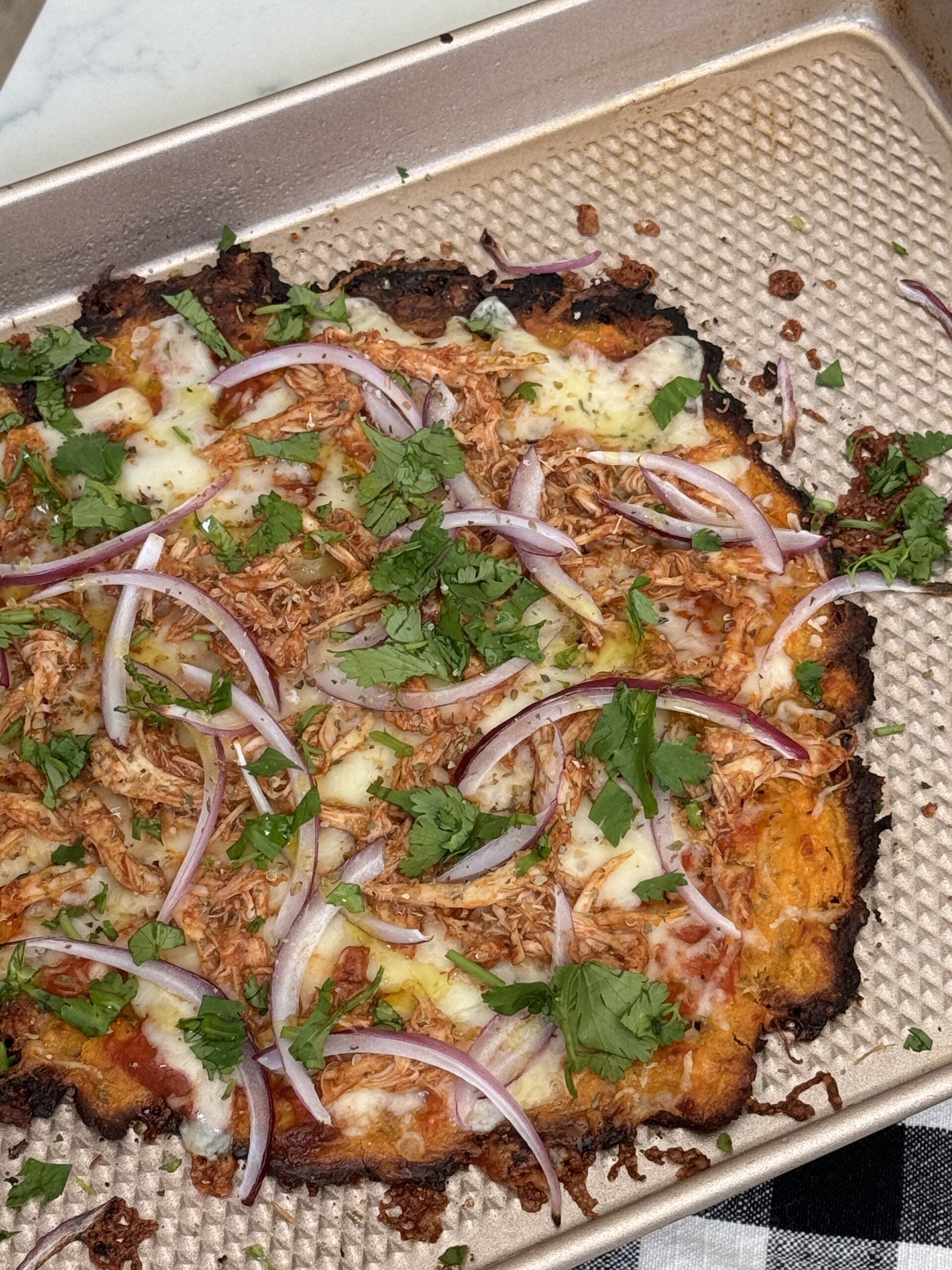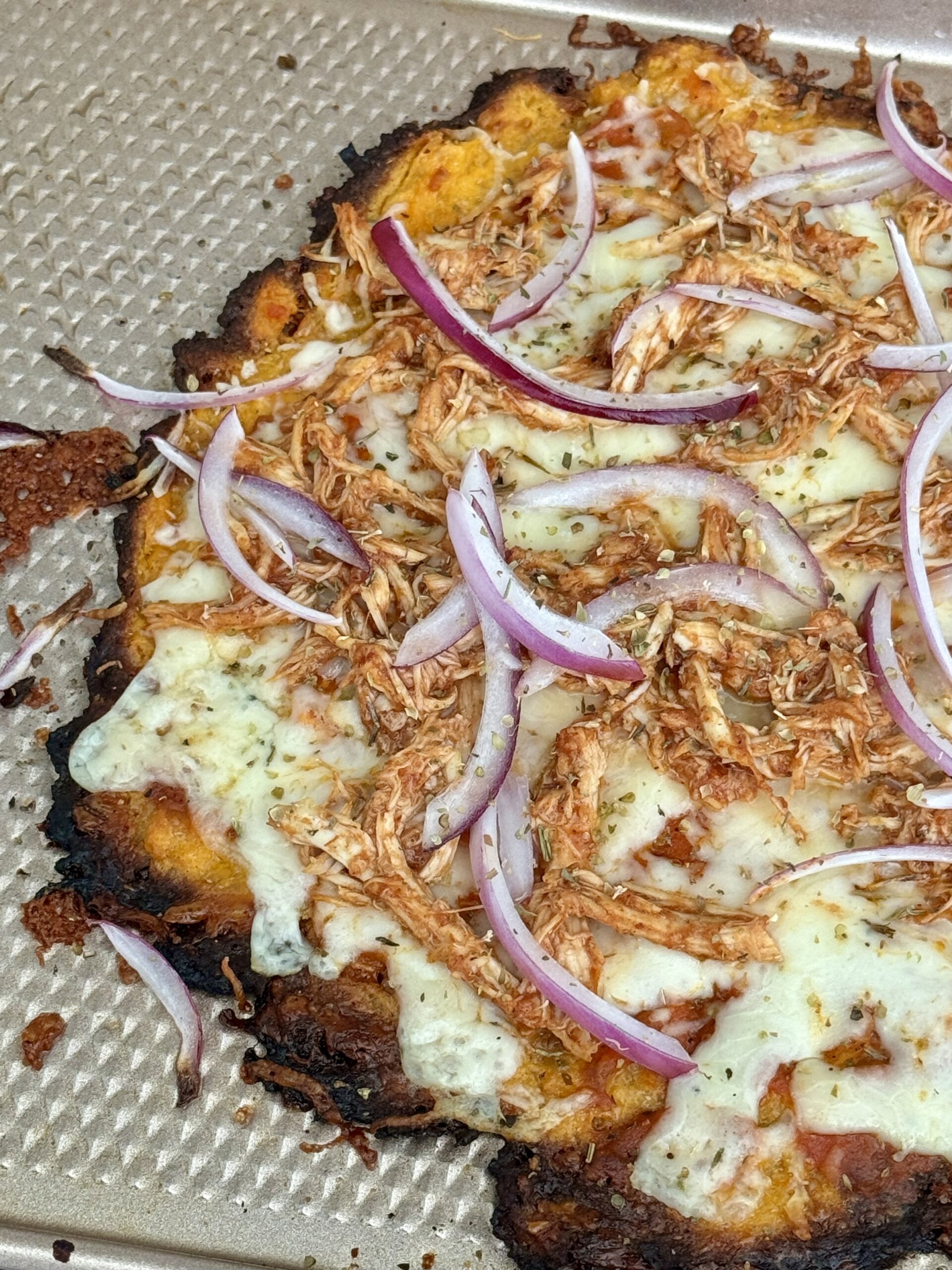 BBQ Chicken Pizza with Flourless Sweet Potato Crust