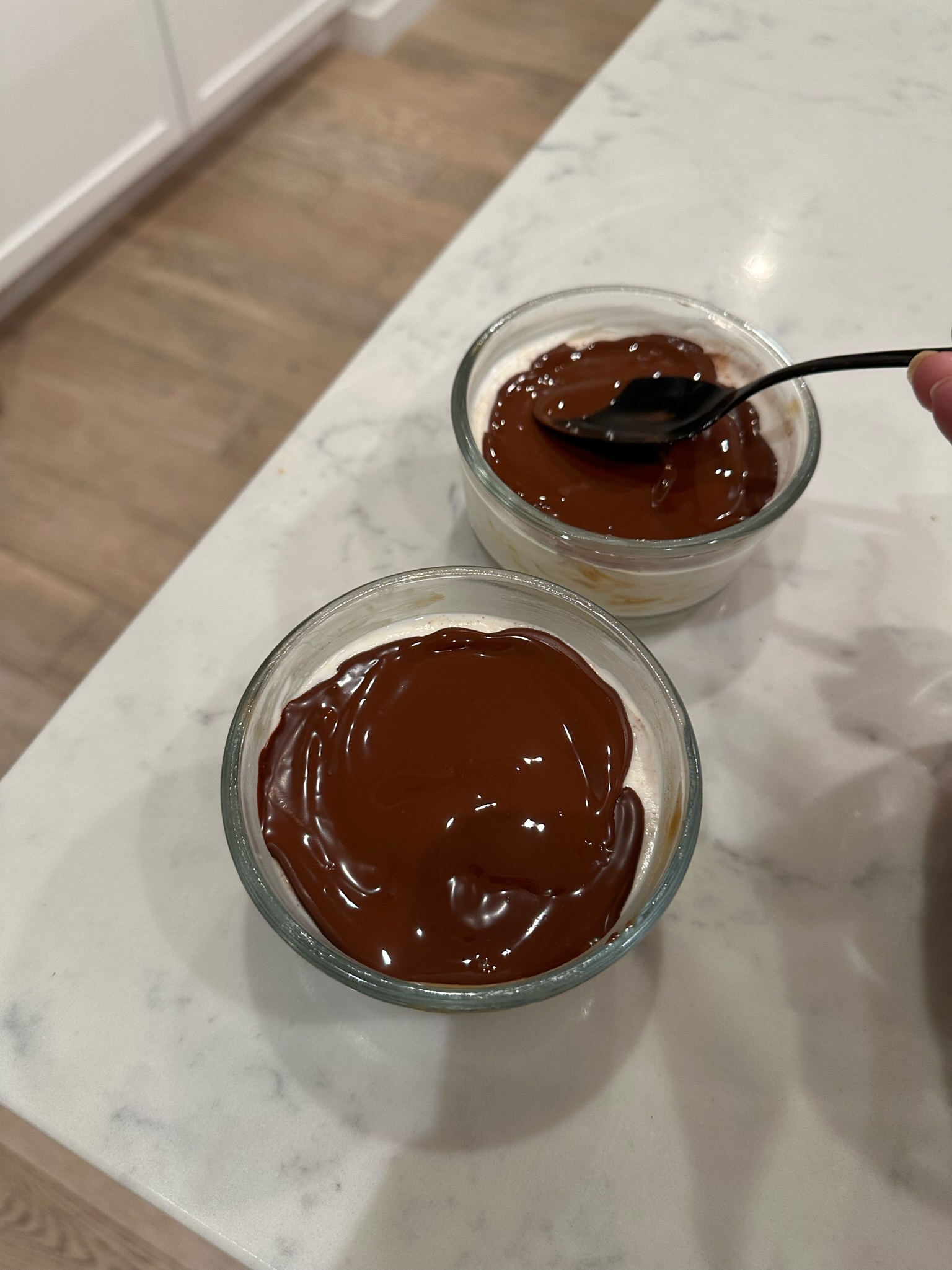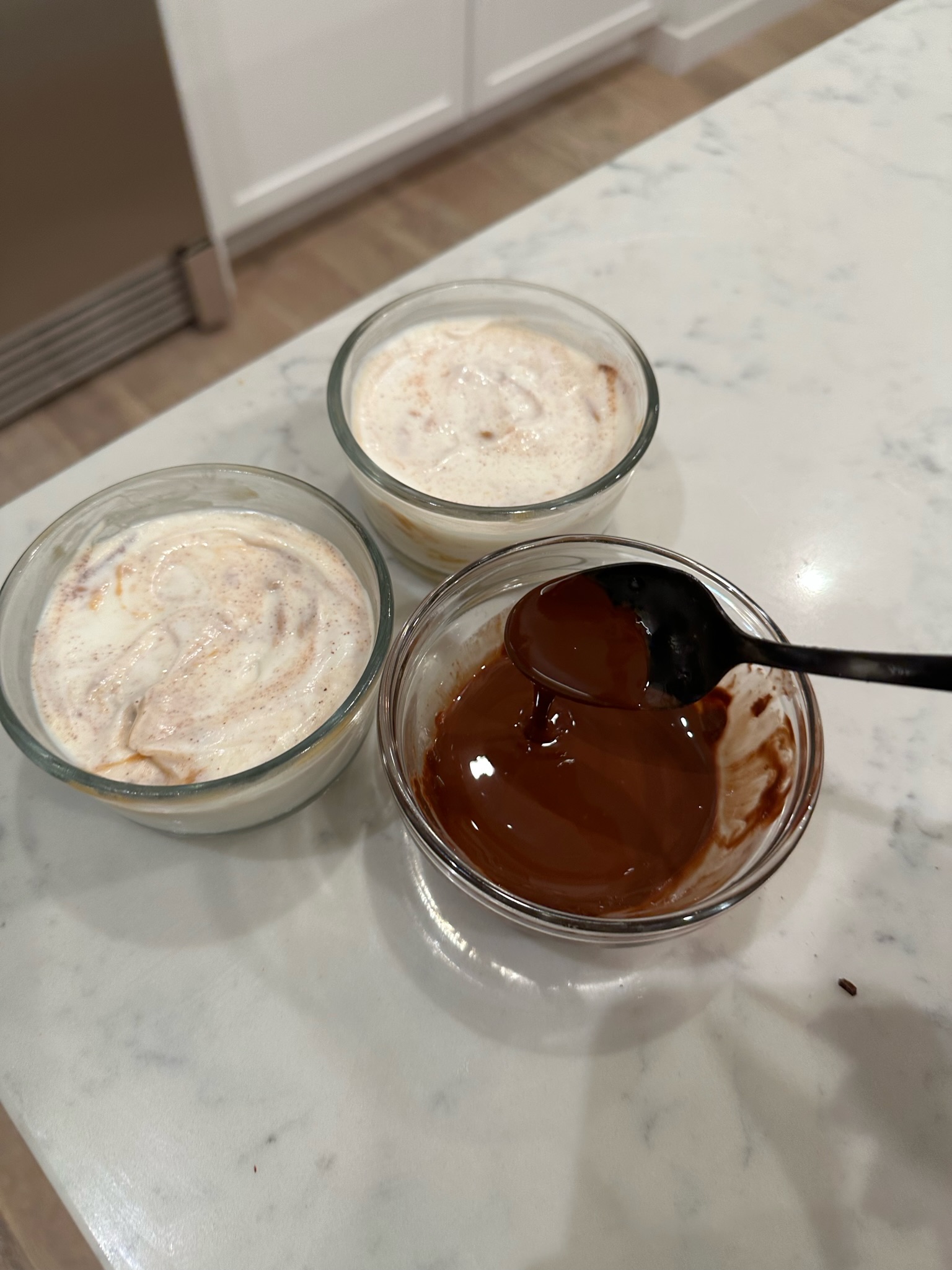 Spread your melted dark chocolate on top of your greek yogurt mixture.