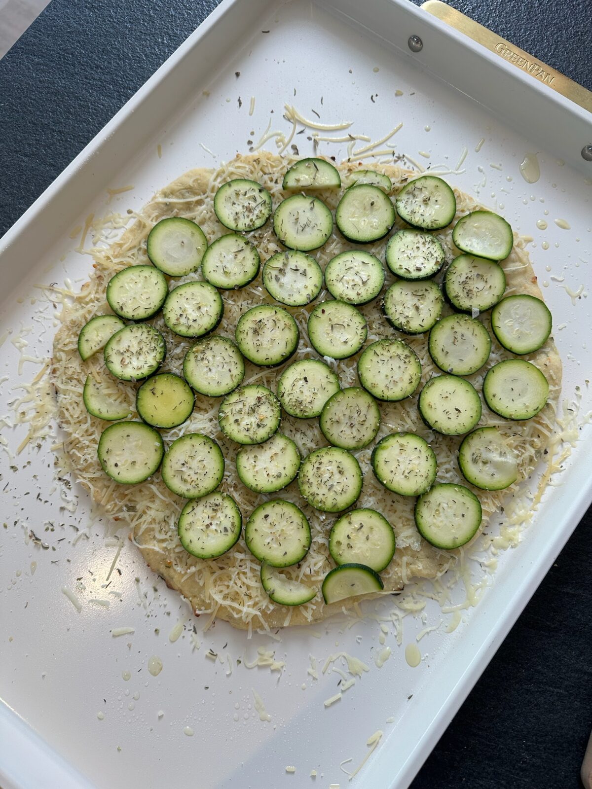 High Protein Zucchini Flatbread Pizza with Cottage Cheese Crust
