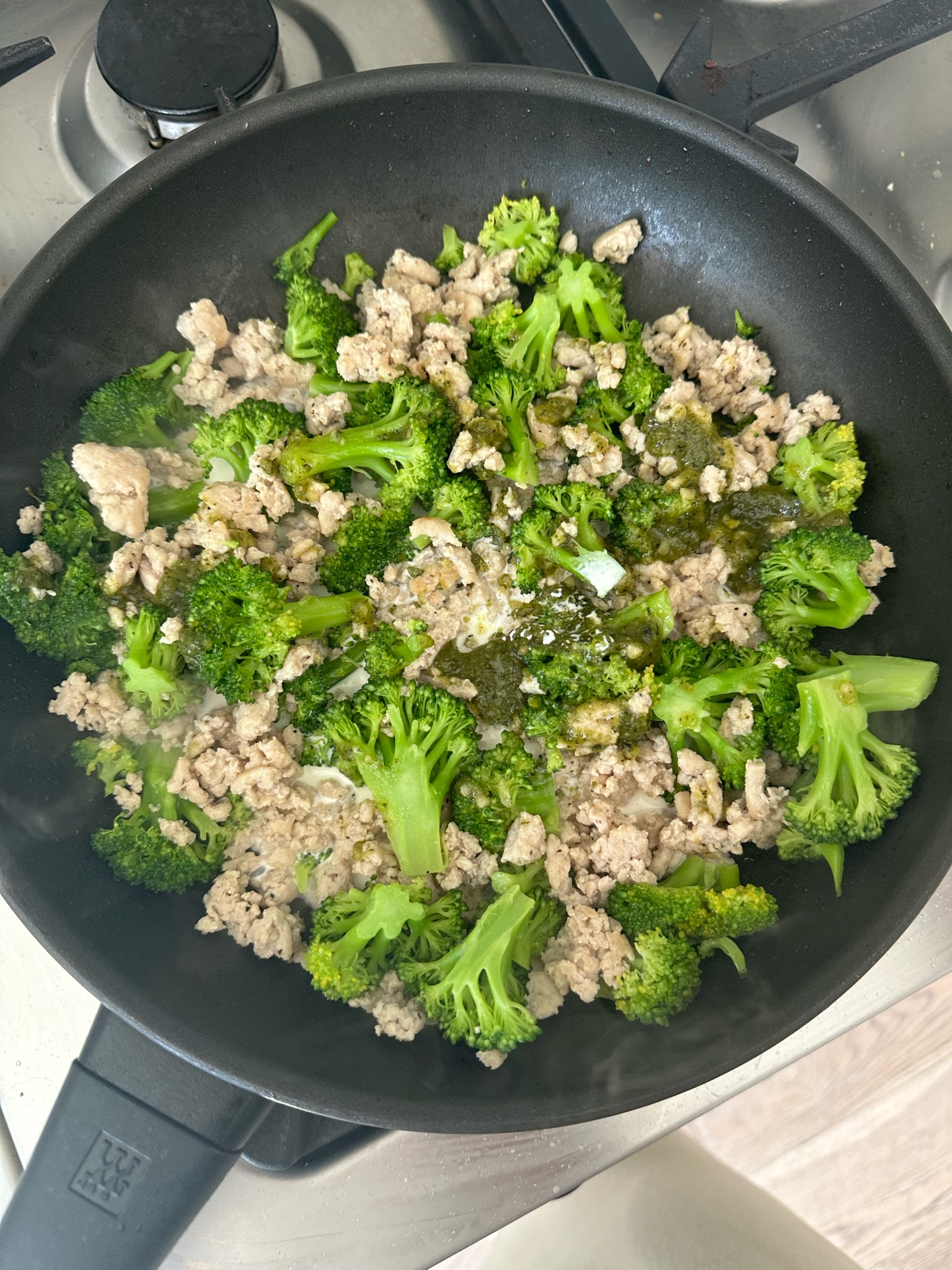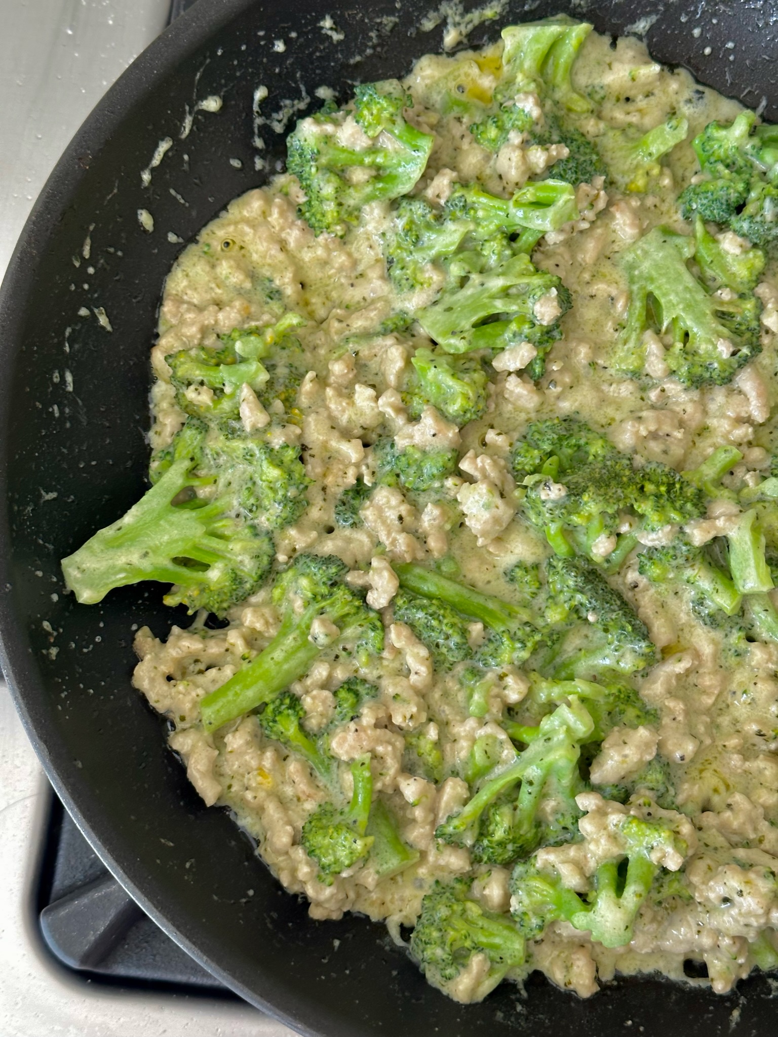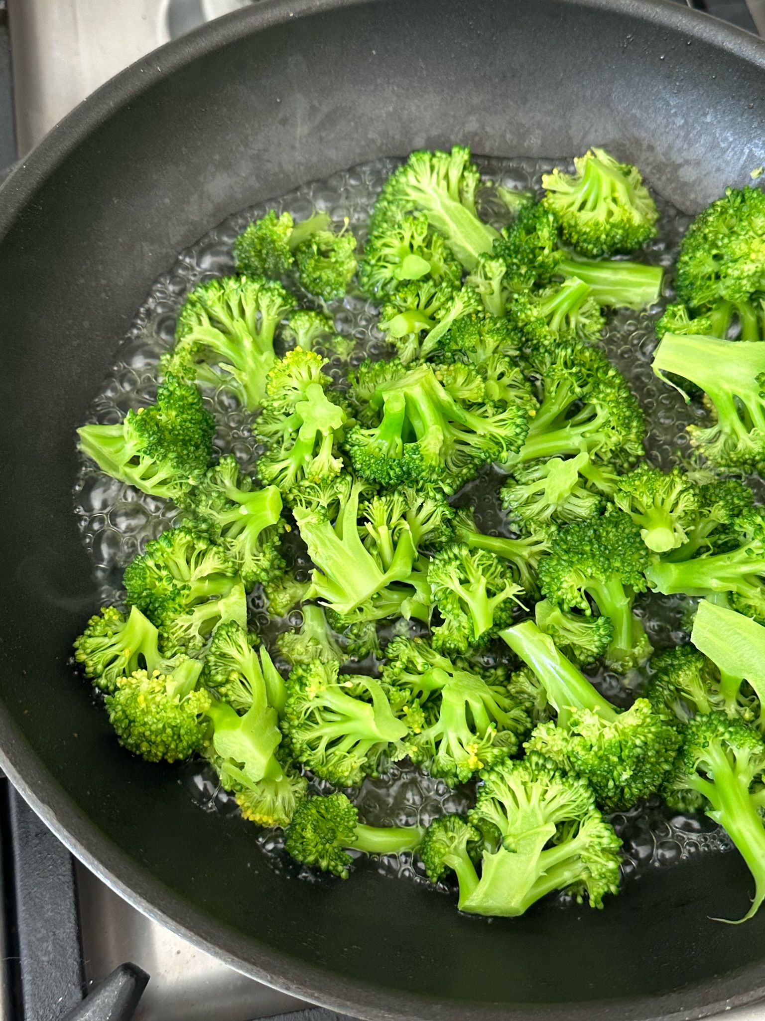 In the same skillet, add the broccoli. Add a splash of water (or broth for extra flavor) and cover with a lid. Steam for 3-4 minutes, then remove the lid to allow any remaining moisture to evaporate.
