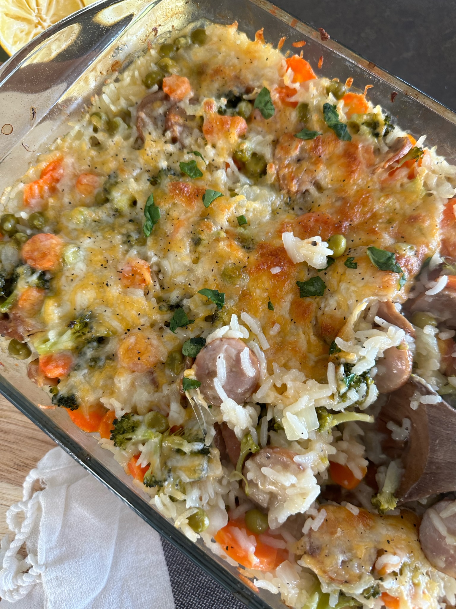 One Pan Cheesy Chicken Sausage Broccoli Bake
