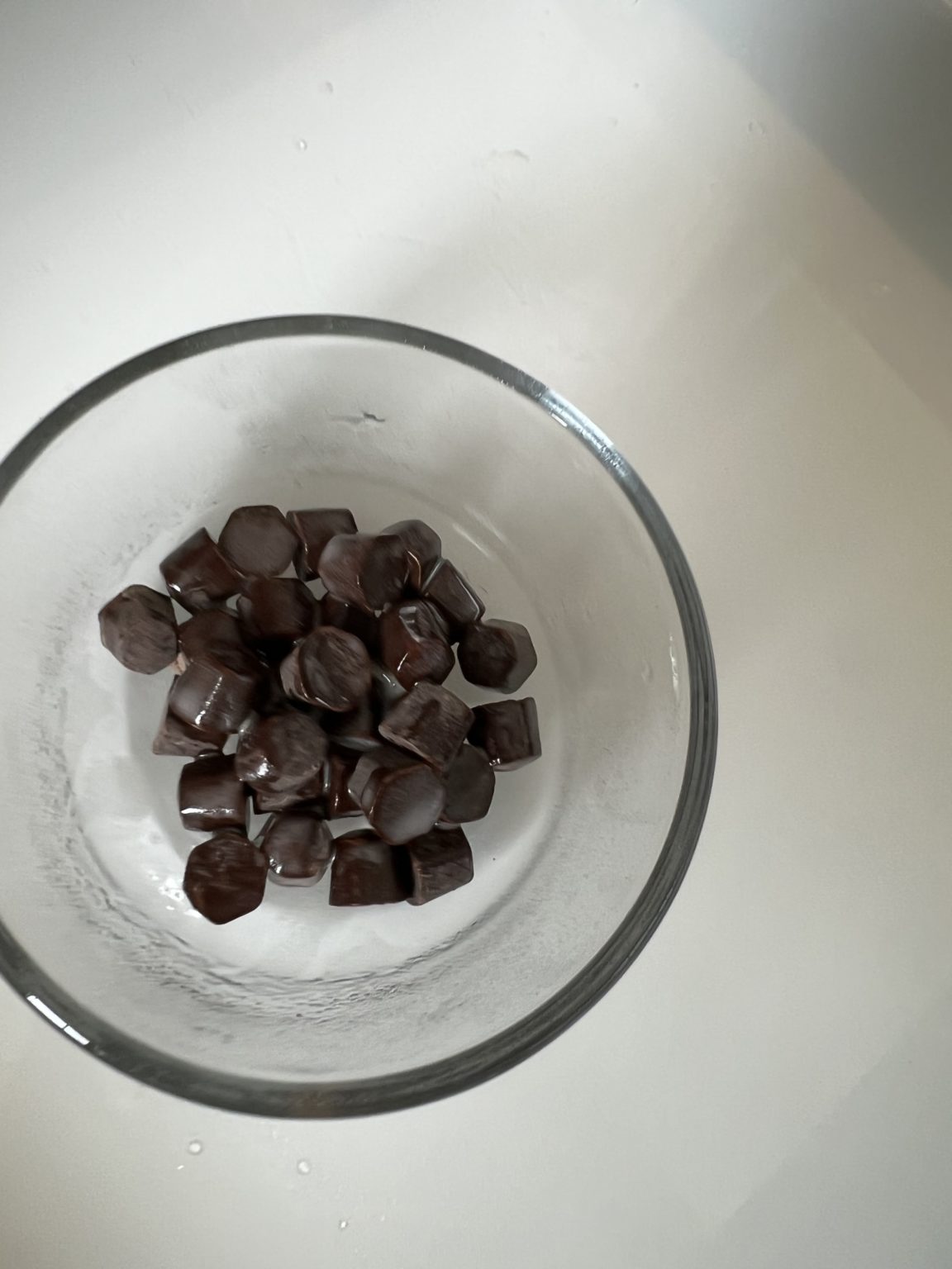 Spray dark chocolate with coconut oil spray then microwave for 30 seconds to melt. Stir to create a spread consistency.