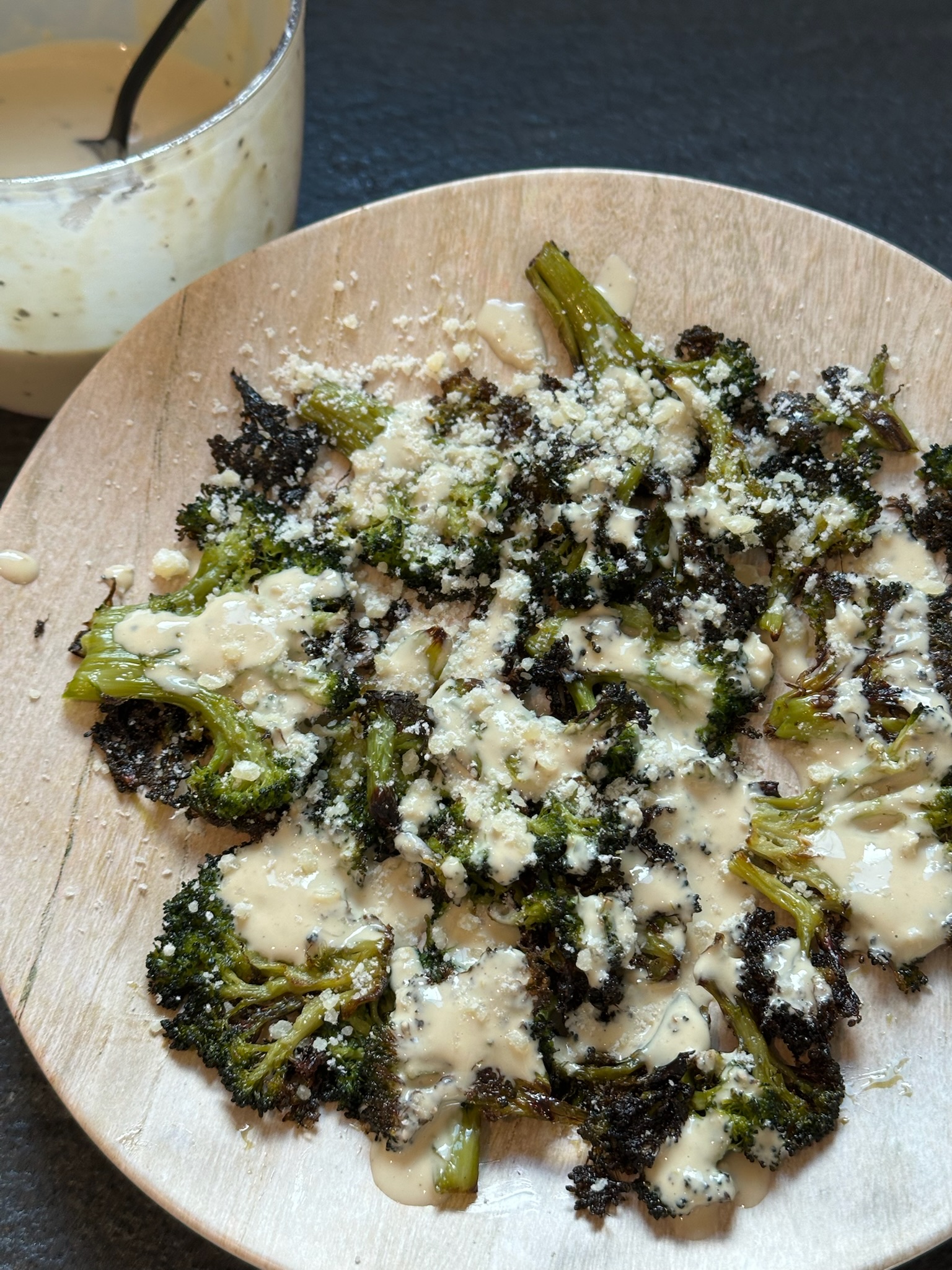 Roasted Smashed Broccoli gets super crispy in the oven is perfect with this simple, dairy-free Caesar dressing. It’s an easy way to make veggies more cravable! SERVING SIZE: 2 (with extra dressing for later!) THE RECIPE: Preheat oven to 425°F. Boil the broccoli until just tender, about 10 minutes. Drain and let is cool slightly...