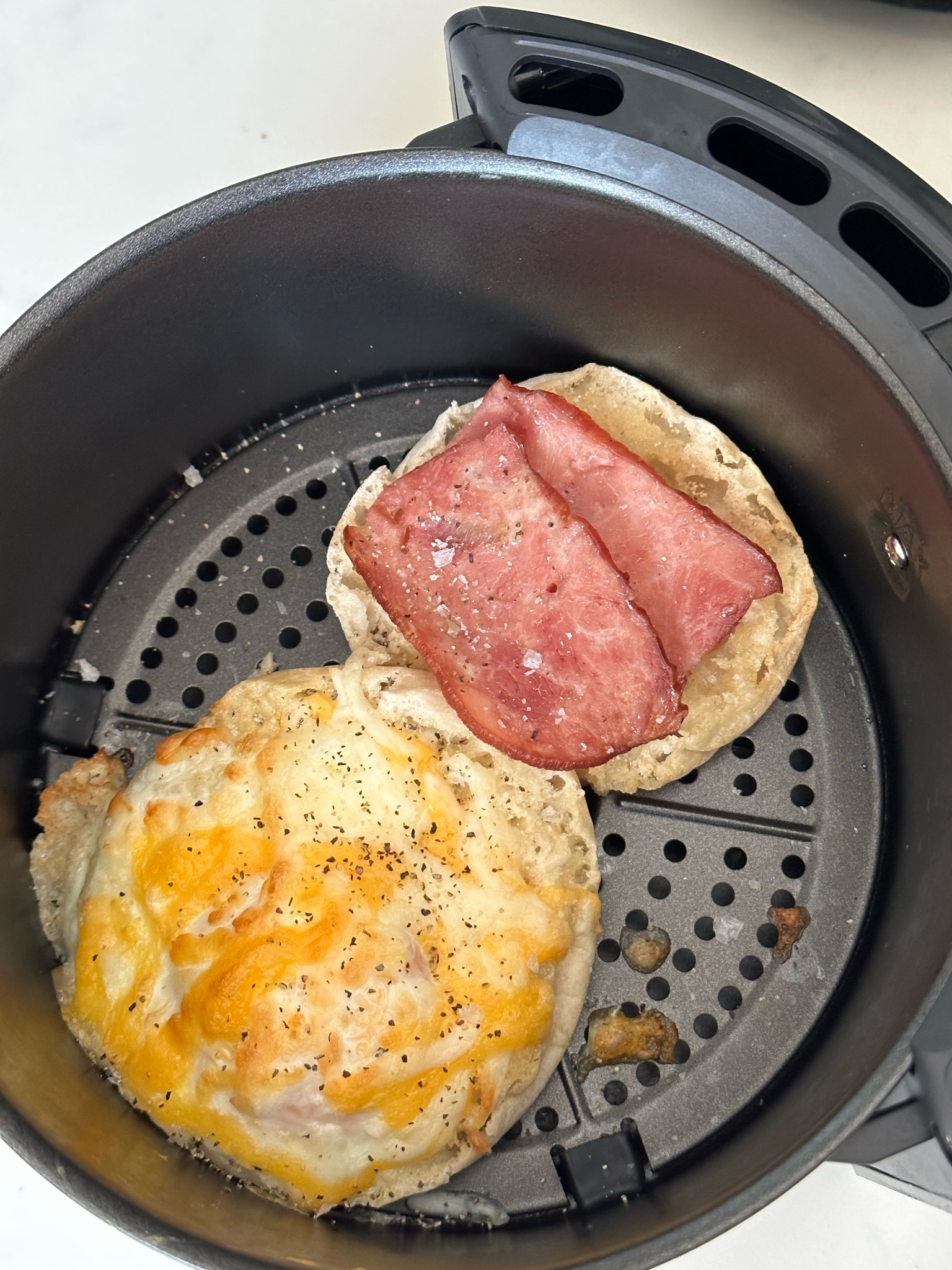 @katieaustin The easiest breakfast sandwich hack that ive been making every morning in just 10 min!! Plus, i love that you can just pop it in the air fryer and go about your busy morning- no need to watch the stove:)